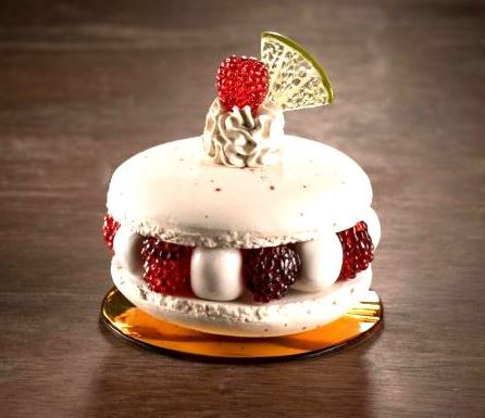 Shayna Leib [o.a. glaskunstenaar] 'Macaron au framboises', onderdeel van 'Pâtisserie: French Series', Kunstmuseum in Den Haag tijdens de tentoonstelling [ 2024-2025 ] ‘Grand Dessert: de geschiedenis van het toetje’.