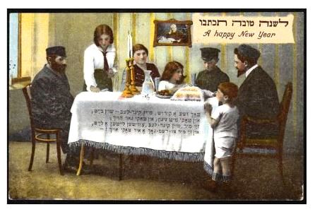 De feestelijke maaltijd had bestaan uit appels met honing, voor een zoet nieuw jaar, ronde challah: zoete, ronde broodjes als symbool voor de cyclus van het leven, granaatappels: voor overvloed en goede daden, vis (met kop): ”Dat we het hoofd mogen zijn en niet de staart” en tentslotte: dadels, bieten, prei, pompoen, en wortels: elk met een specifieke wens voor het nieuwe jaar, zoals geluk, bescherming en spirituele groei.